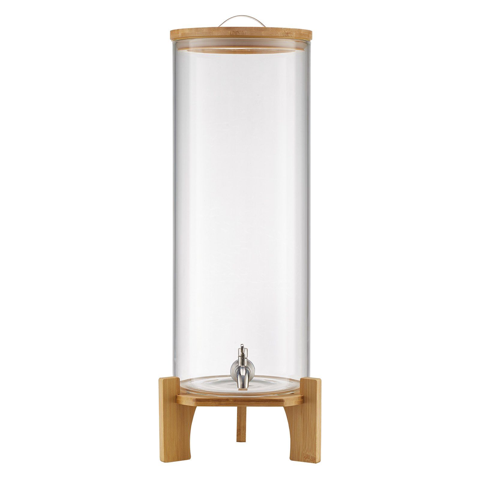 The transparent glass cylinder shows drink levels clearly, while the wide-mouth design makes refills easy. The lid prevents dust, and the stand provides stable support and easy dispensing.
