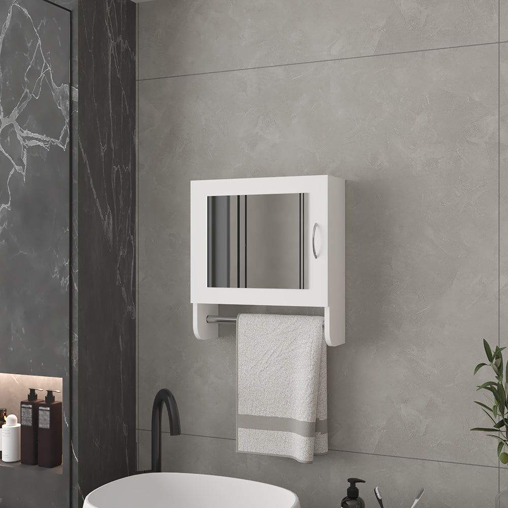 Upgrade your bathroom with the versatile Medicine Cabinet Ulysses, featuring a sleek mirrored door for added functionality. This wall-mounted cabinet is perfect for maximizing storage in compact spaces, with a superior shelf (4.4"H x 16.5" W) and a lower shelf (8.7"H x 16.5" W) to neatly organize your toiletries. The built-in towel rod (16.5"W) ensures your towel is always within reach. Crafted from durable white manufactured wood, the Ulysses cabinet combines modern design with practical storage solutions, making it an essential addition to any bathroom.Dimensions: Height: 19.7'Width: 17.7' Depth: 5.7'Furniture Type: Ready to assemble (full assembly required).Certifications: CARB phase II compliant – TSCA Title VI Compliant.Warranty: 1-year warranty coverage in wooden parts- 1-year warranty coverage in hardware pieces since its manufacturing date is found in the lot number printed in the product box.Shipment details: Free shipping to the 48 contiguous states - delivery time: Between 2 and 5 days, depending on the customer's location, season, and weather factors.Other details: This product does not include decorative or background elements; Check that the box is in good condition and well packed and check with the help of the manual that the corresponding parts have been included; For more information regarding warranty, shipment details, cancellations, returns & replacement parts go to the bottom section of our website to learn more; Installation & Assembly Instructions included.
